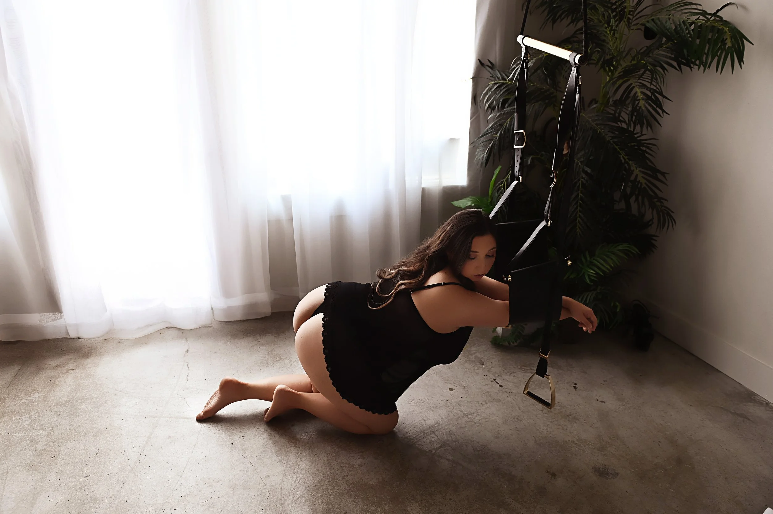Every movement was guided. From soft, over-the-shoulder moments to stronger, more intentional poses using the straps, this session captured a range that felt both feminine and bold.